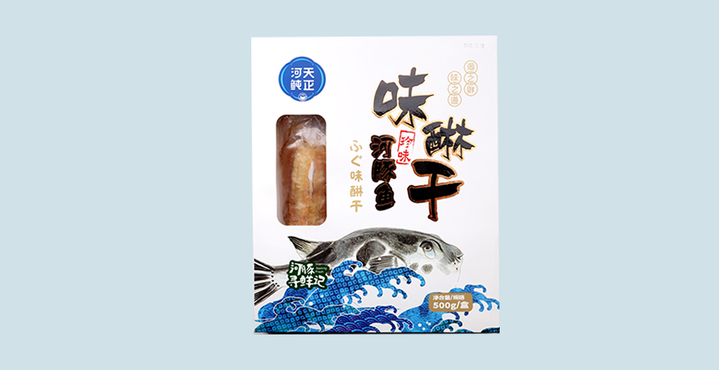味醂魚(yú)干 天正味醂河豚魚(yú)干,用料嚴(yán)格、工序考究、傳承古法。我們?nèi)『与圄~(yú)精肉,去骨去膜、標(biāo)準(zhǔn)切割,經(jīng)數(shù)天低溫風(fēng)干,祛除魚(yú)肉內(nèi)水分,再添加味醂調(diào)味料,浸入鮮甜美味。解凍后,烤箱烘烤便可食用。