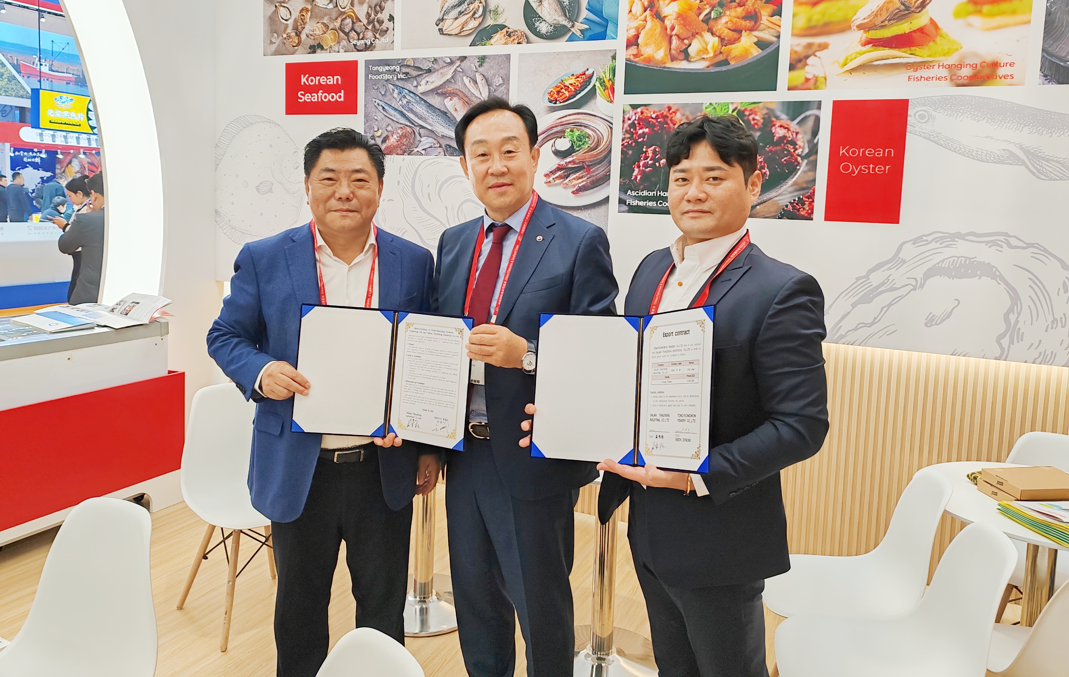 27屆青島漁博會(huì),天正與韓國(guó)統(tǒng)營(yíng)市長(zhǎng)簽約出口協(xié)議